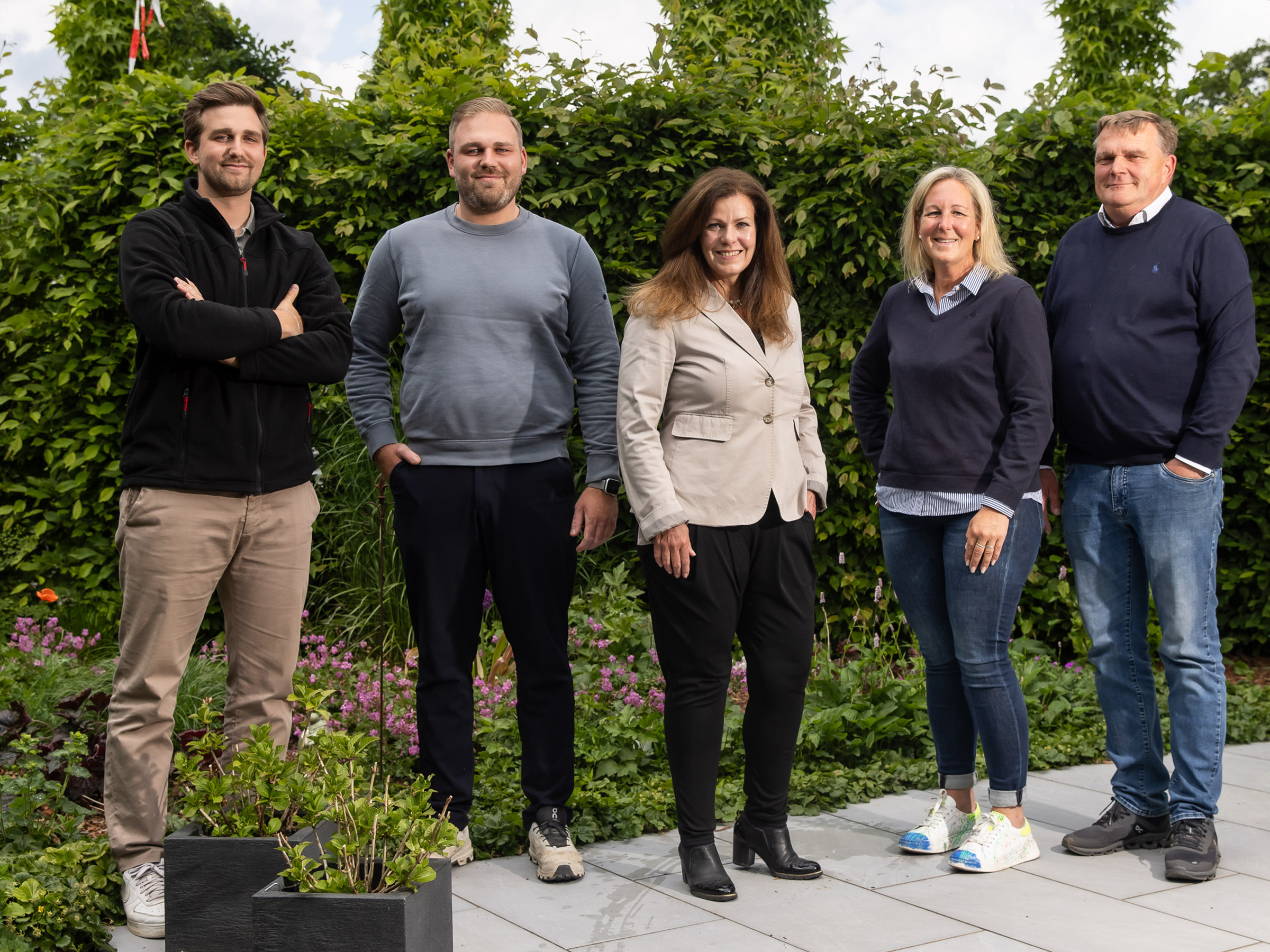 Besuch im Familienbetrieb: Sparkassenberaterin Daniela Dolz (Mitte) mit Maximilian Wientzek, Patrick Ehlers, Frauke Wientzek und Wilhelm Ehlers (von links) Seit 75 Jahren kümmert sich die Firma Ehlers in Langenhagen um Pflanzen und Grünanlagen. Die dritte Mehr lesen